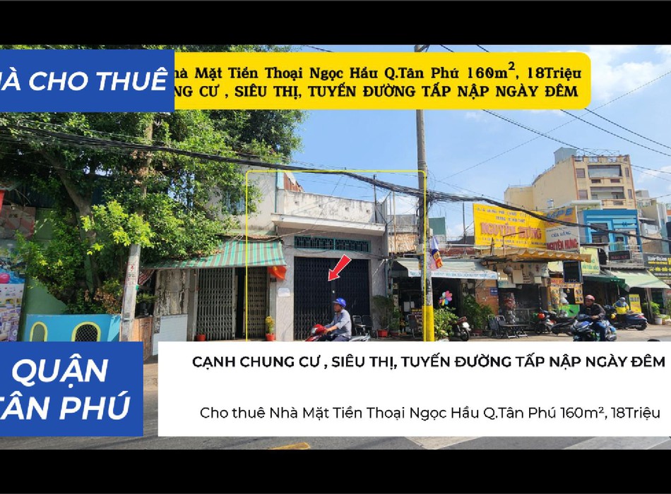 Cho thuê nhà mặt tiền thoại ngọc hầu q.tân phú 160m , 18triệu